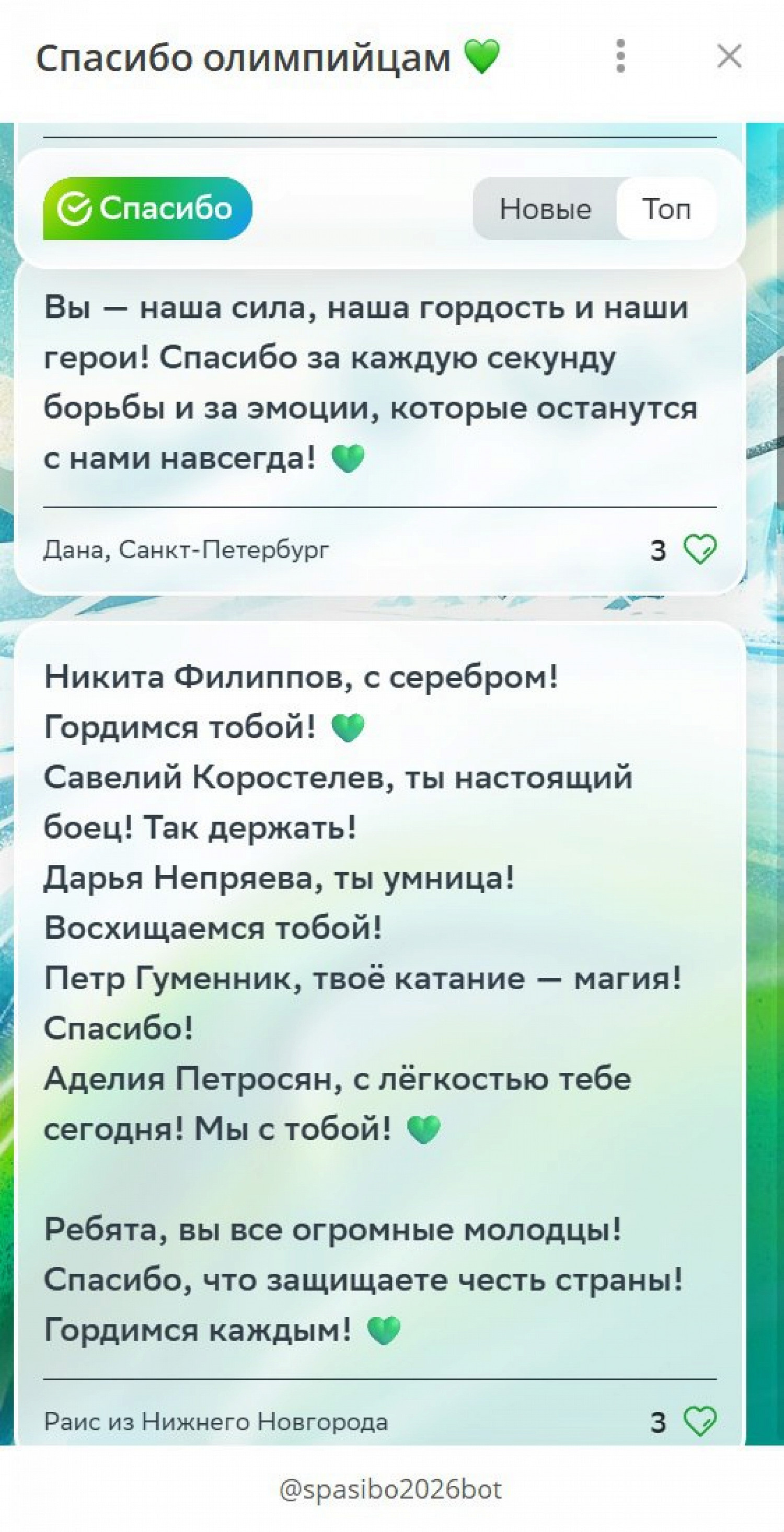 На триумф российского спортсмена отреагировал Сбер. Банк запустил телеграм-бот «Спасибо олимпийцам», в котором любой желающий может оставить поздравления Филиппову или выразить благодарность другим атлетам-олимпийцам из России.
