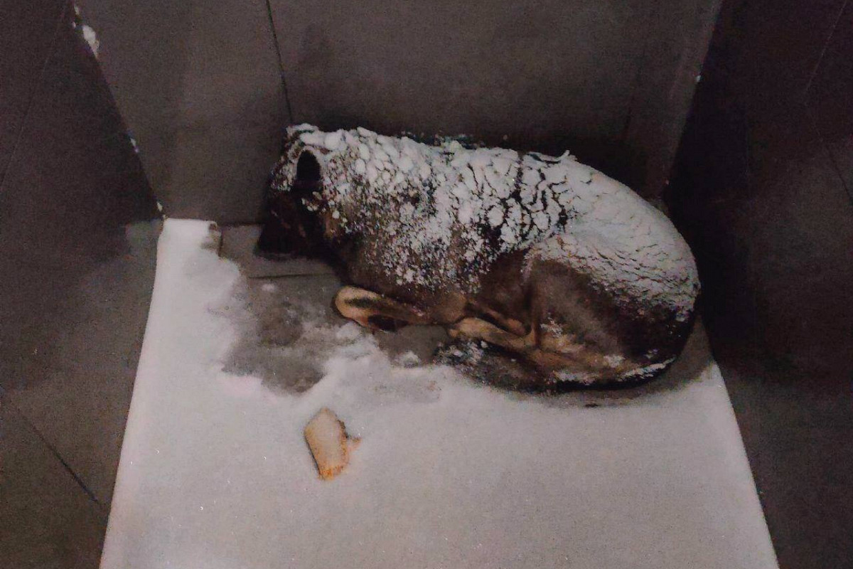Дворняжка уже полтора года приходит к пиццерии погреться. Сотрудники ухаживали за ней: кормили, поили, грели одеялами. Собака так часто приходила в заведение, что ей дали кличку — Додобоня.