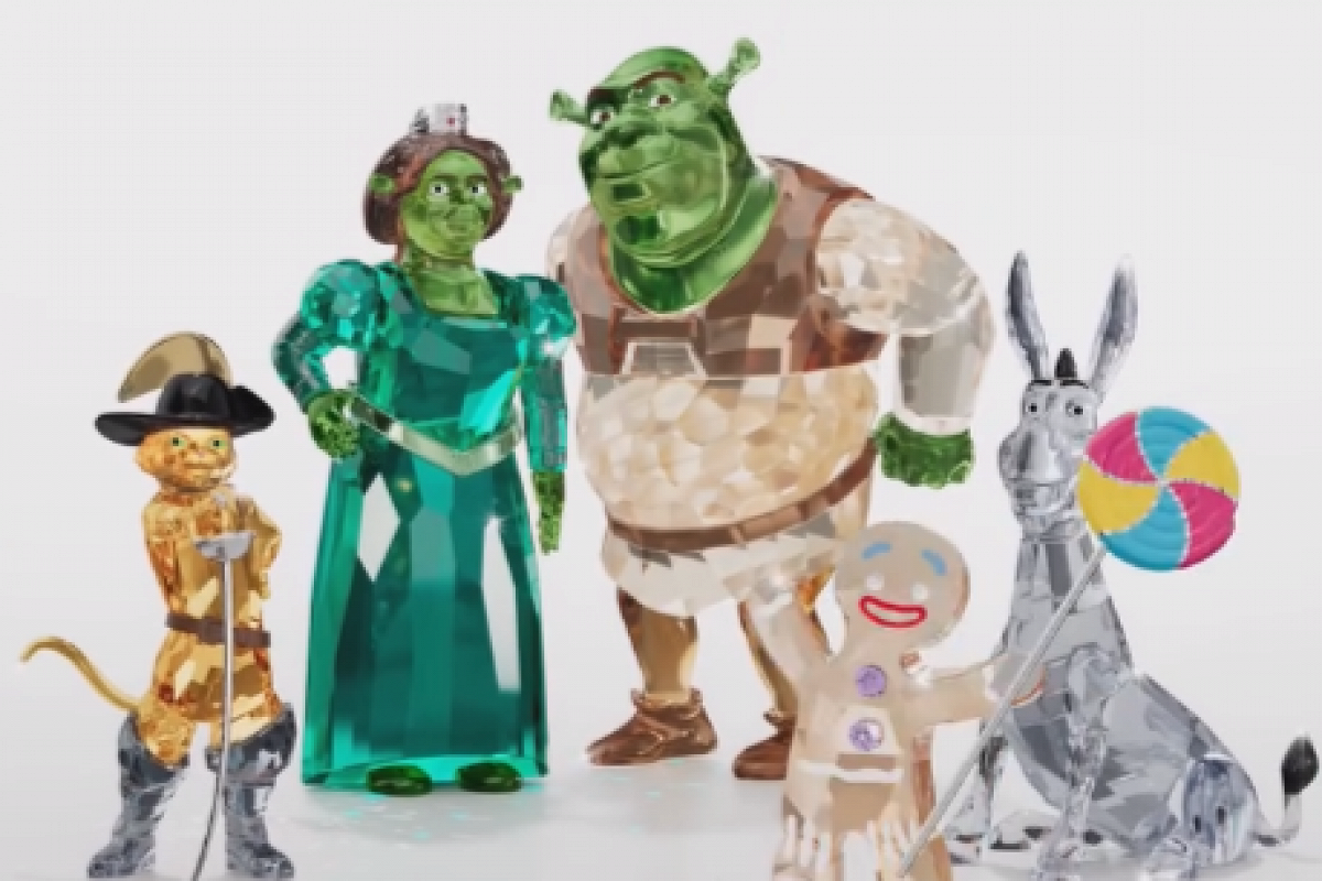 Бренд Swarovski представил коллаборацию с мультфильмом «Шрек» к 25-летию франшизы. В коллекции появились хрустальные фигурки персонажей из мультфильма: Шрека, Фионы, Осла, Кота в сапогах и Пряни. Цена изделий составляет от 189 до 750 долларов (от 14,8 до 58,9 тыс. рублей).