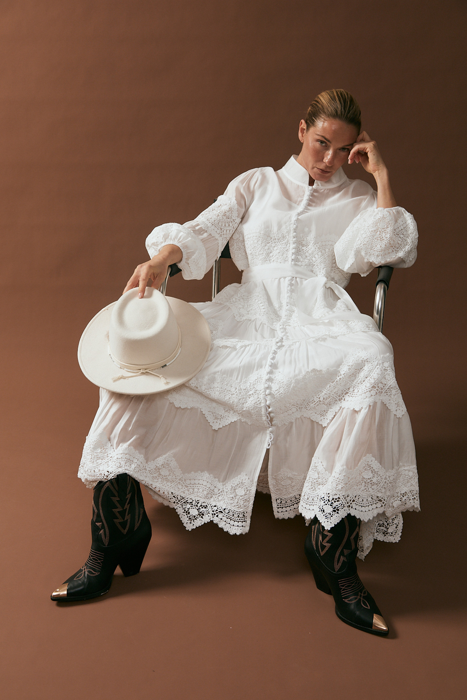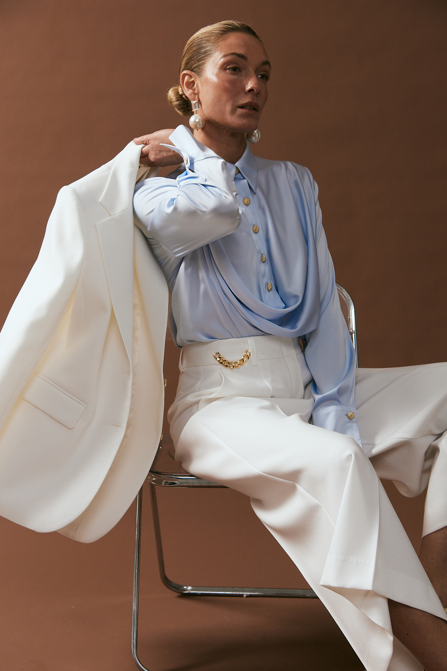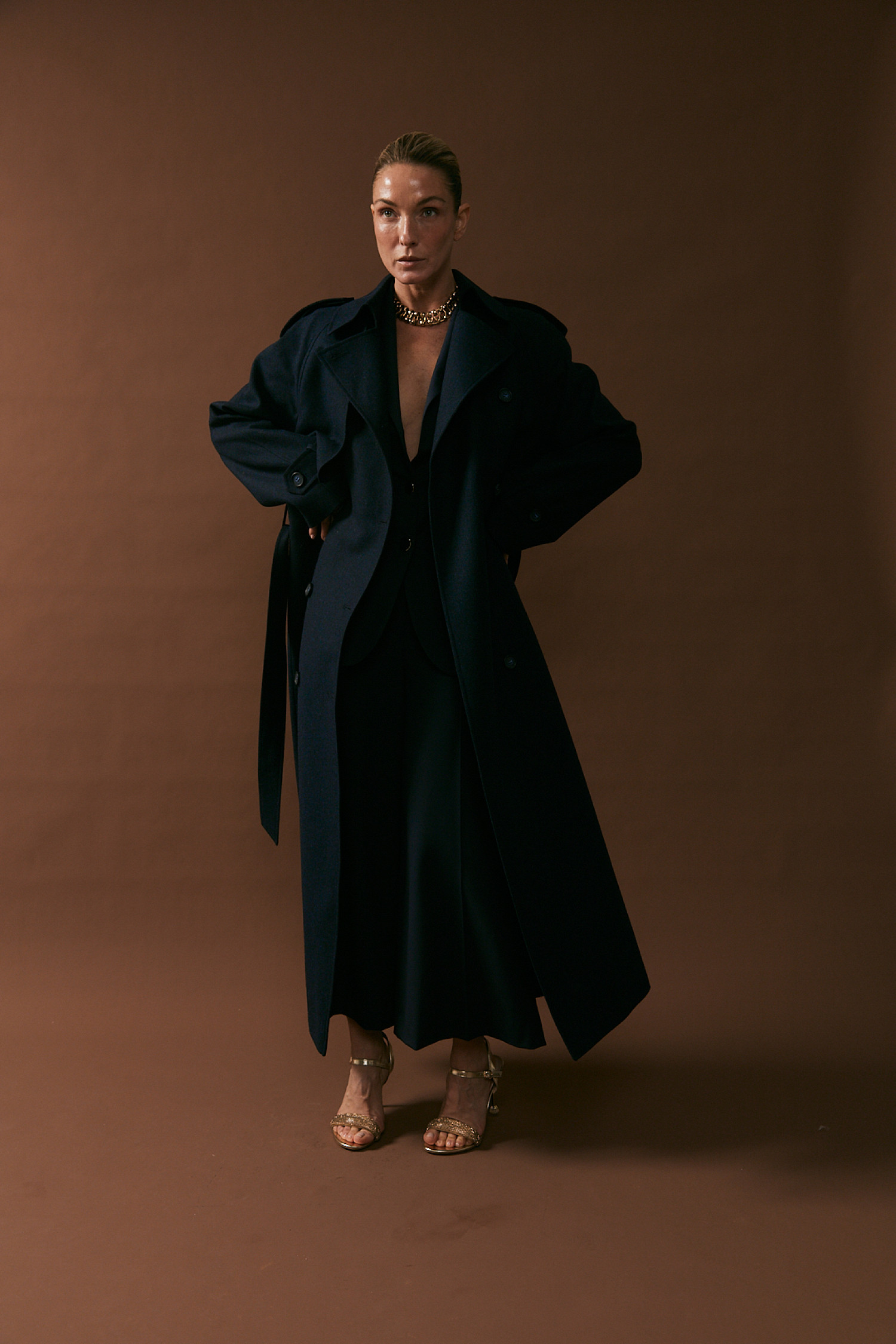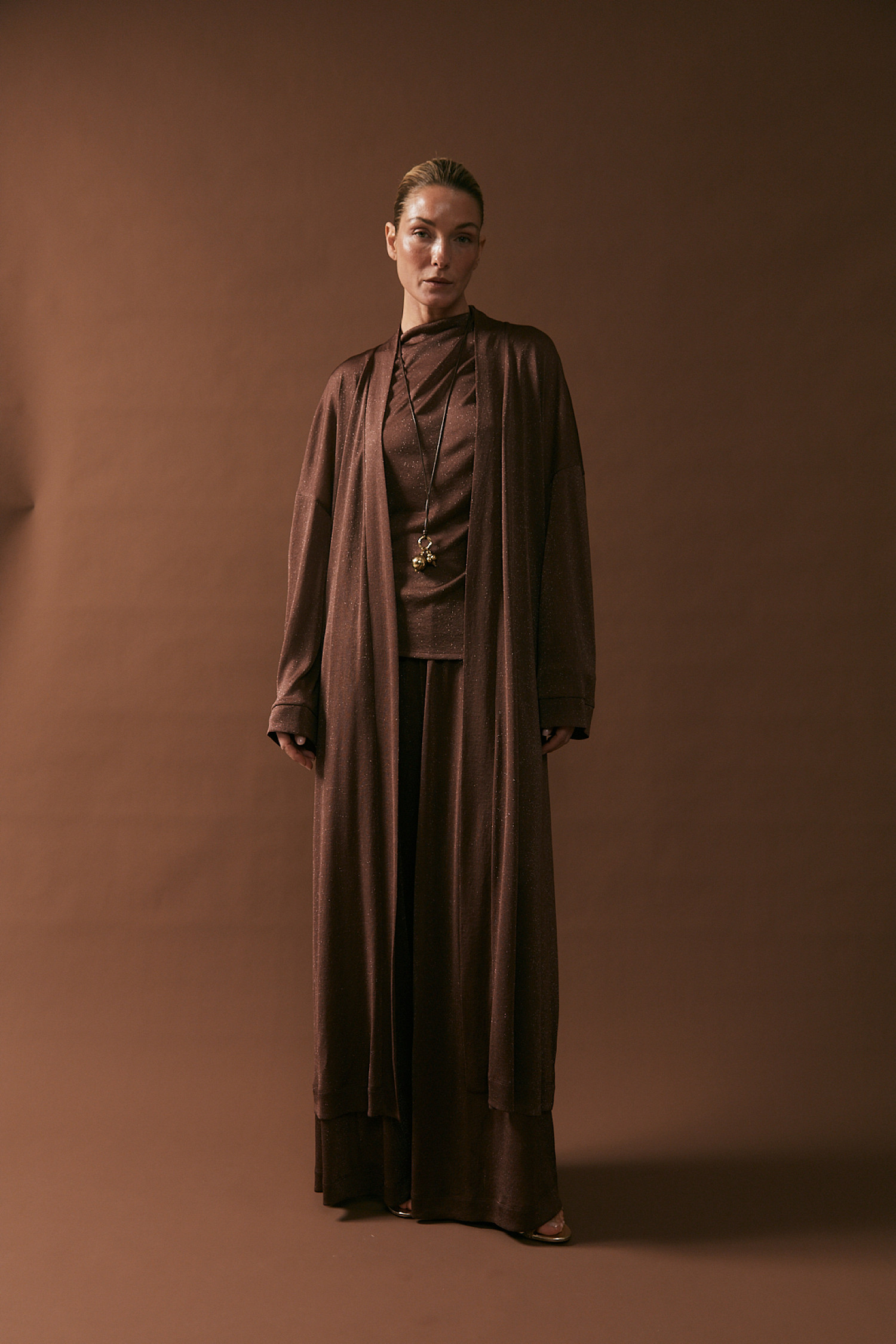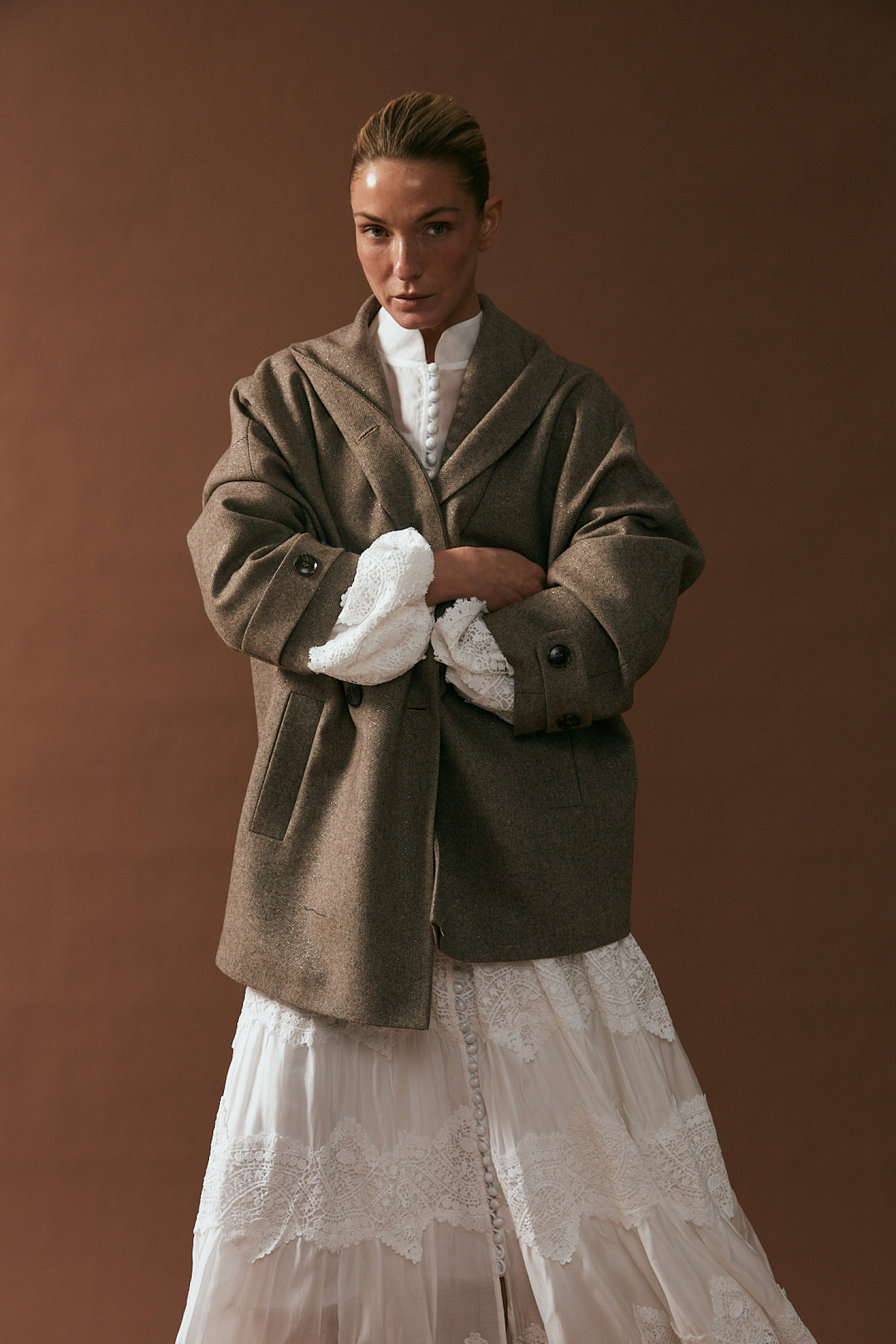 В работе использовались ткани с люрексом, классическая костюмная группа и мягкий кашемир. «Мы создаем одежду для женщины, которая выбирает уверенность без лишних слов, стремится быть разной и не привязывается к одной роли. Мы подчеркиваем красоту девушек и их отношение к себе, завершая каждый образ изделиями из качественных тканей», — отметила основательница бренда Юлия Кудрявцева.