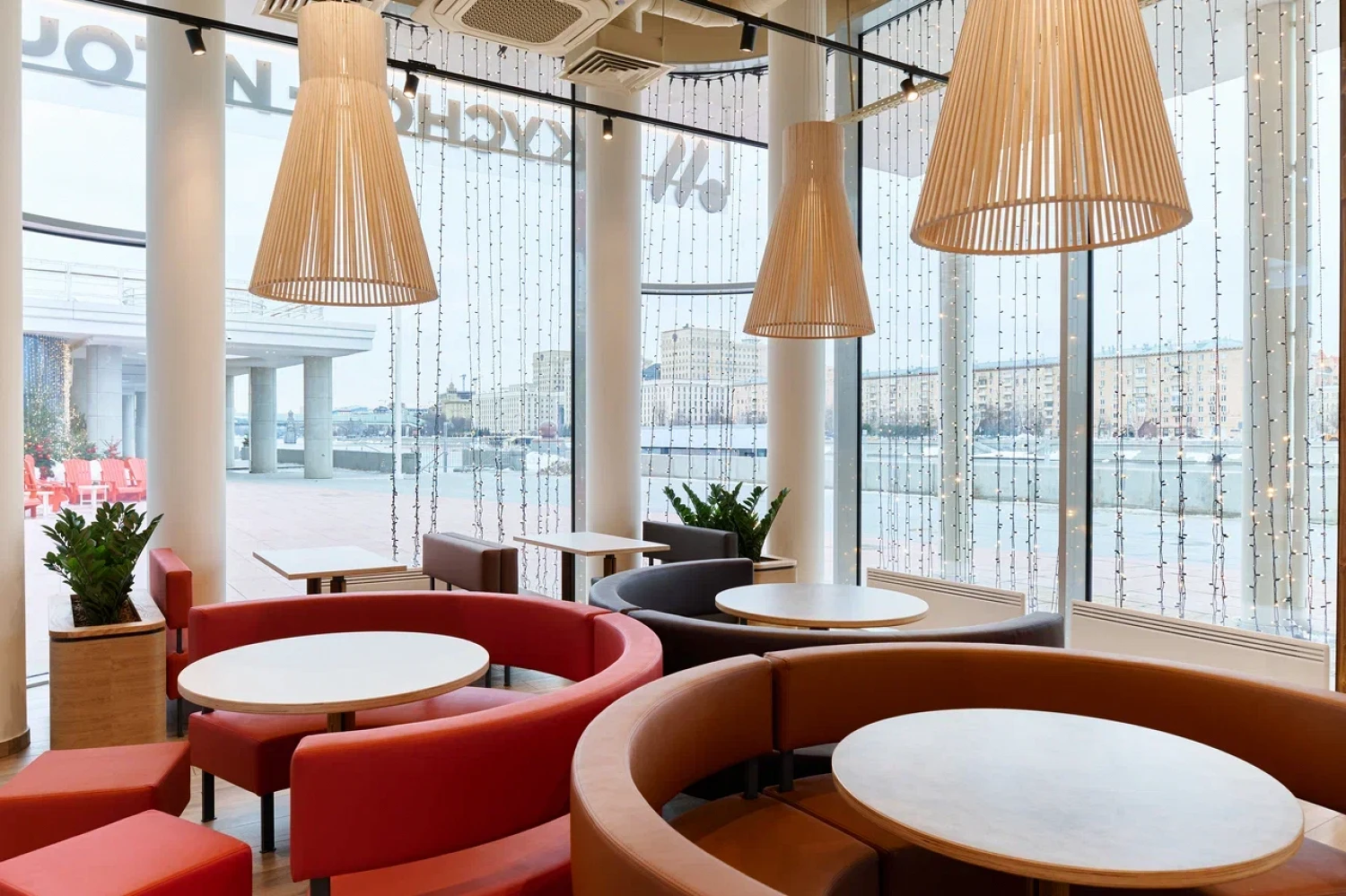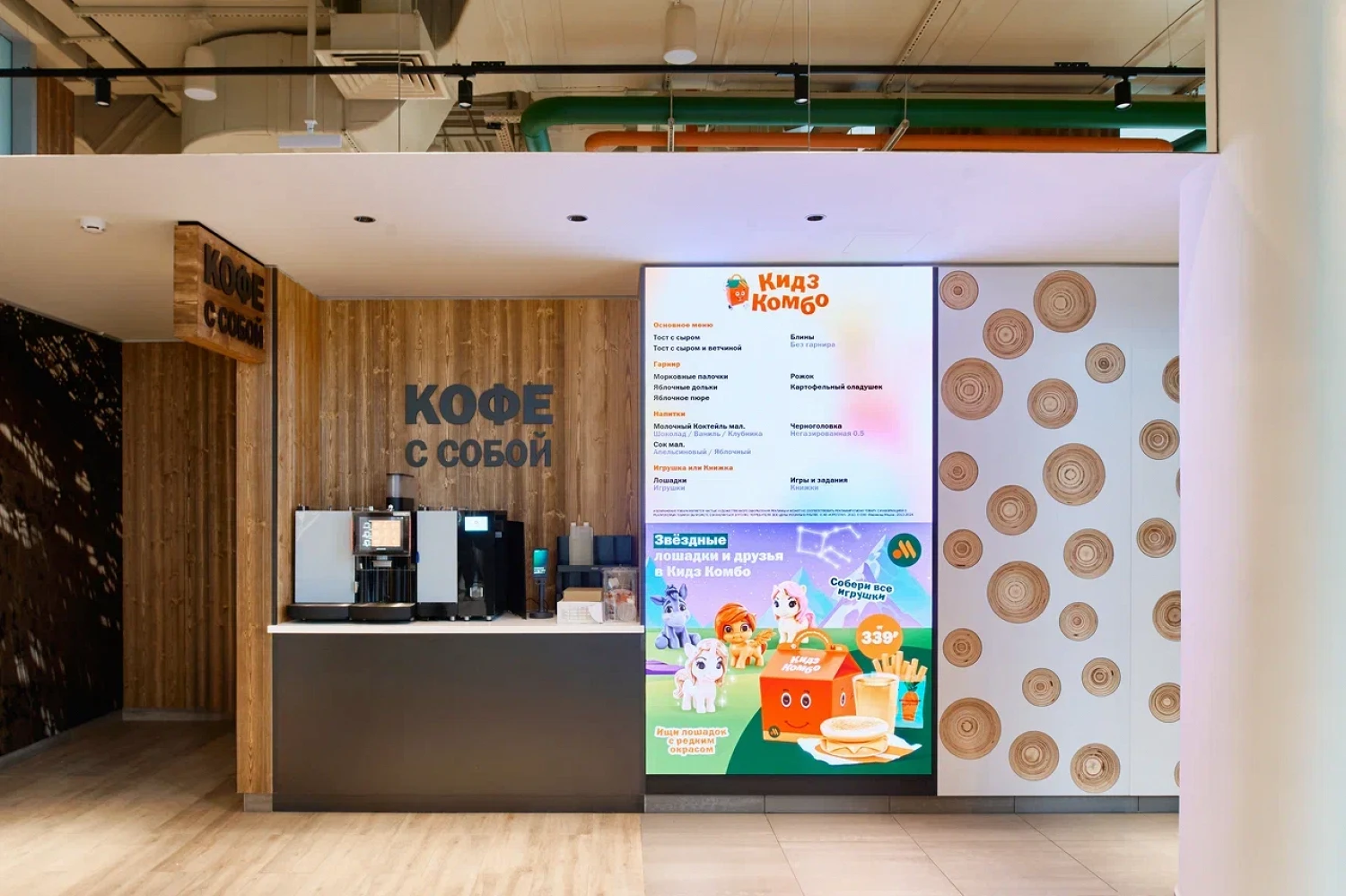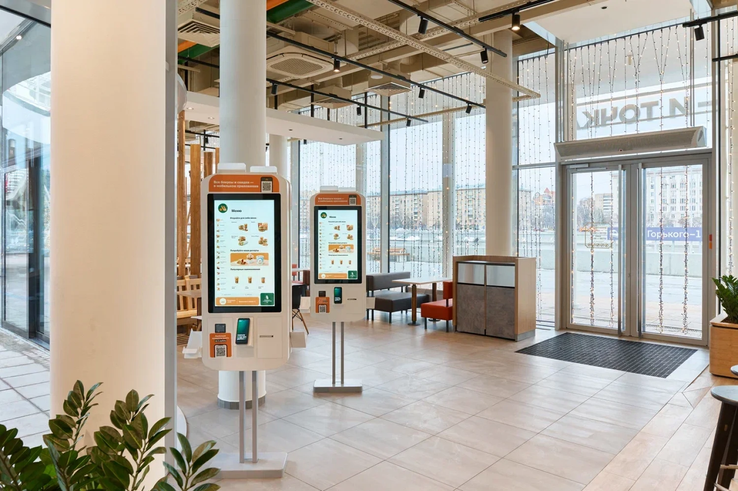 В новом флагмане предусмотрен бесконтактный формат обслуживания: посетители смогут сделать заказ с помощью киосков самообслуживания или через мобильное приложение сети. Заказы будут доставлять роботы-помощники. Они также будут поддерживать чистоту в зале.