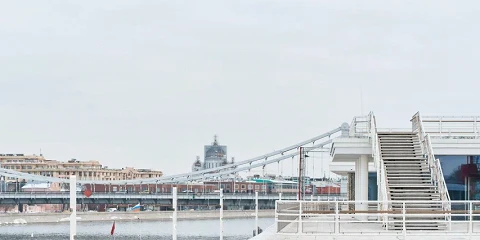 Декор заведения выполнили из натурального дерева и бетона. Оно расположено напротив причала «Парк Горького-1», в одном из павильонов с панорамным остеклением на площади 689 квадратных метров. Основной зал площадью 320 вадратных метров. рассчитан на 220 посадочных мест. В теплое время для гостей будет доступна летняя веранда на 90 мест.