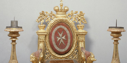 Тронное кресло гроссмейстера Ордена Святого Иоанна Иерусалимского было изготовлено в 1799–1800 годах для императора Павла I, который принял орден под покровительство после захвата Мальты французами. В коллекцию Эрмитажа экспонат поступил в 1946 году.