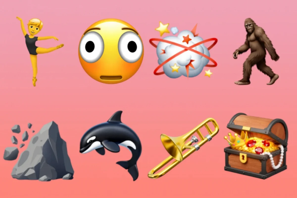 Среди новых символов ― тромбон, сундук с сокровищами, раздутое лицо, йети, облако драки, косатка, оползень и гендерно-нейтральный вариант балеруна/балерины. Кроме того, появились новые варианты оттенков кожи для эмодзи с борющимися людьми и людьми в костюмах зайчиков.
