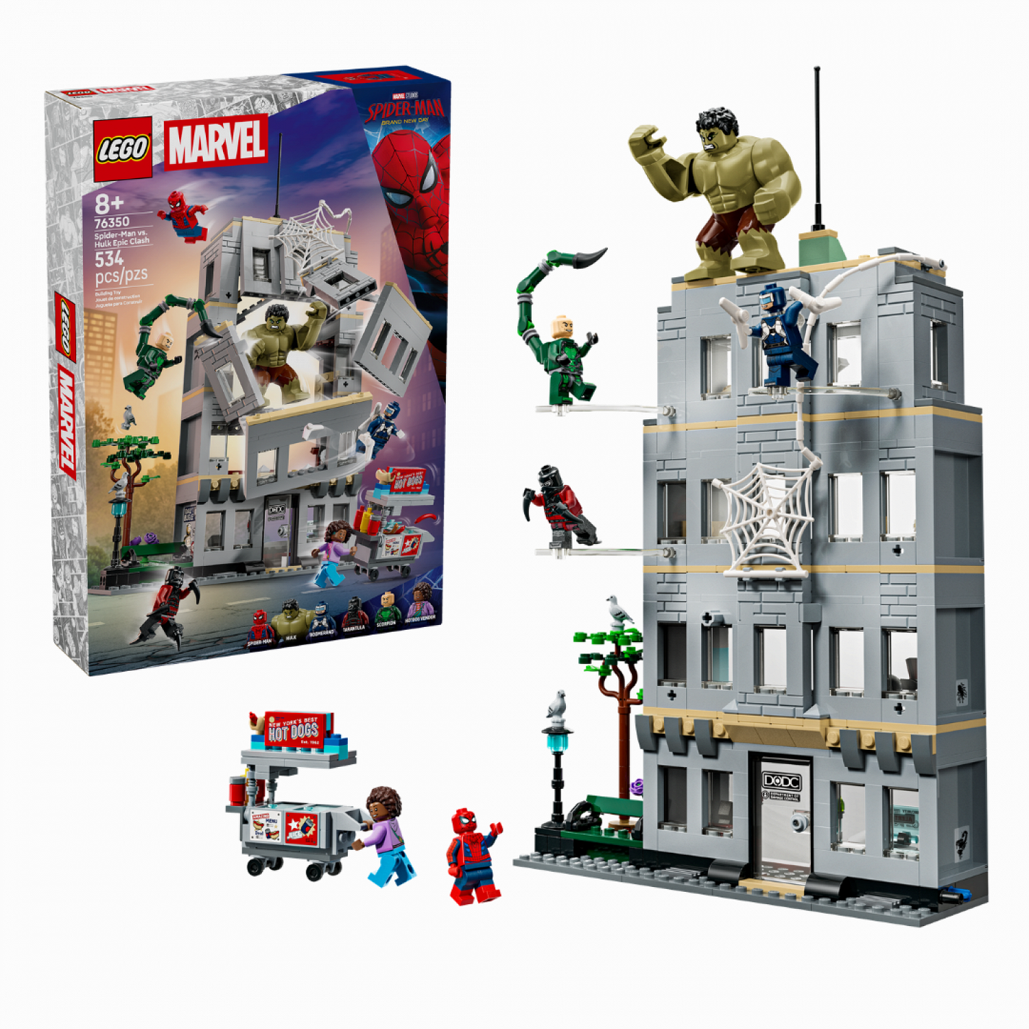 «Эпическая битва Человека-паука против Халка» обойдется в 89,99 доллара. В набор войдут мини-фигурки Человека-паука, Халка, Скорпиона, Тарантула, Бумеранга и продавца хот-догов. Персонажи расположатся на четырехэтажном здании. На каждом этаже есть прозрачная платформа для героев. Благодаря Халку дом можно разрушить.