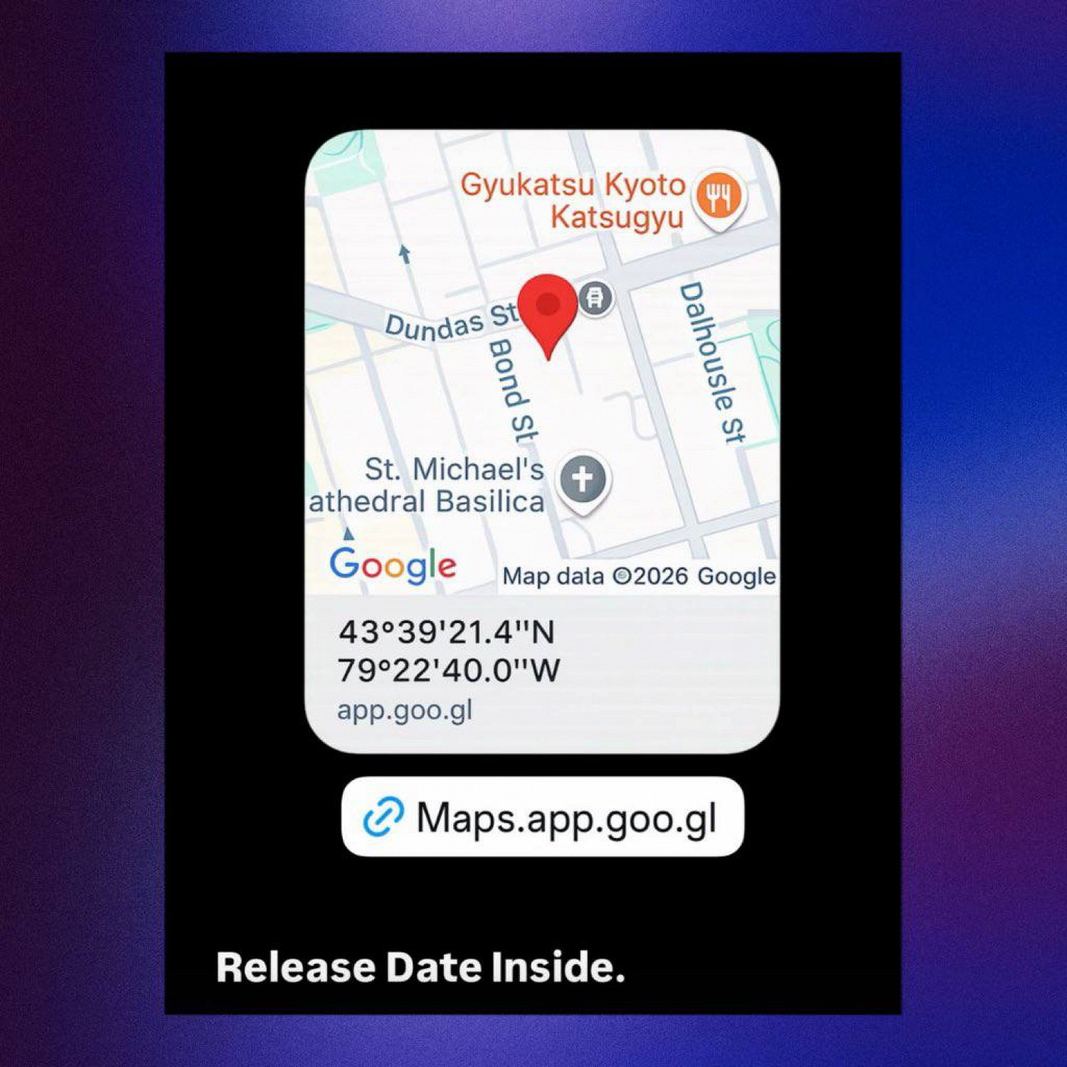 Вчера, 20 апреля, Дрейк опубликовал в инстаграме* сторис с координатами парковки на углу Дандас-стрит Ист и Бонд-стрит. Он написал: «Дата выхода внутри».