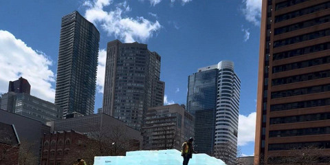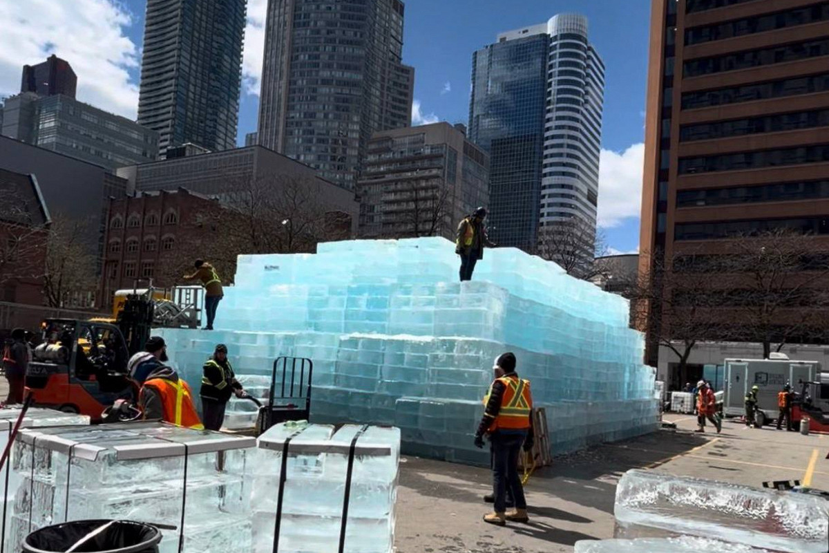 В центре Торонто появилась гигантская ледяная глыба. Внутри нее рэпер Дрейк заморозил дату выхода своего альбома «Iceman».