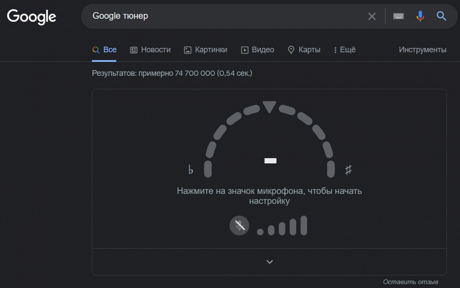 Аналогичная функция тюнера существовала и раньше. Ее можно было получить с помощью команды «настрой мой инструмент» для Google Assistant. Но теперь она доступна в виде поисковой фразы и работает на всех устройствах.