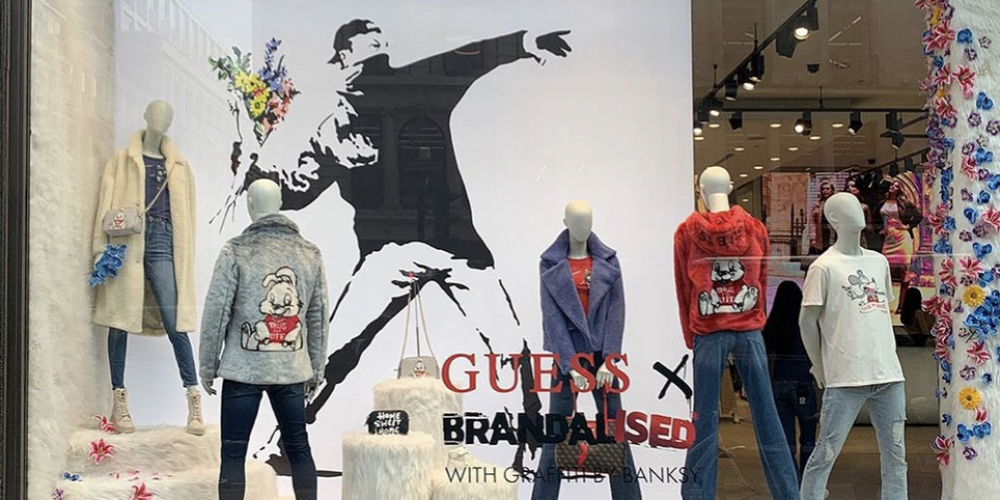 Изначально Guess рекламировал новую капсульную коллекцию как коллаборацию с Brandalised, у которого есть лицензия на использование граффити Бэнкси. Марка предлагает поклонникам художника различные предметы одежды и аксессуары с его работами.