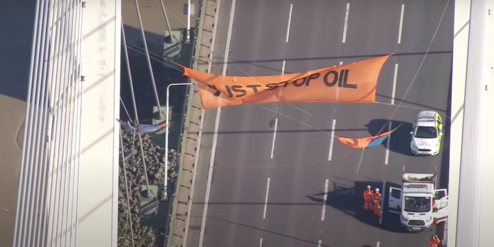 Движение Just Stop Oil выступает против разработки новых месторождений нефти и газа. Его сторонники обливали томатным супом «Подсолнухи» Винсента ван Гога (картина экспонировалась под стеклом и осталась в целости), кидали торты в лицо восковой фигуры Карла III в Музее мадам Тюссо, а также проводили еще множество акций. Например, приклеивали себя к асфальтовому полотну автотрасс и заливали витрины люксовых магазинов краской.