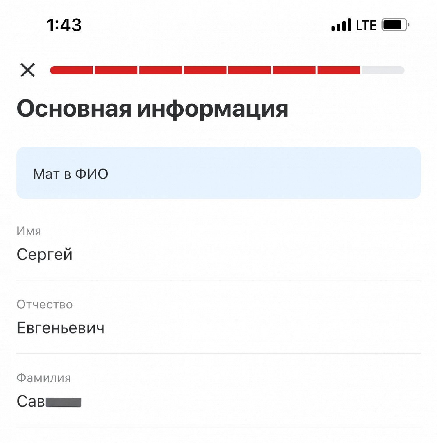 Один из юзеров рассказал о своей проблеме в твиттере. В качестве причины блокировки было указано «Мат в ФИО», при этом нецензурной лексики в его полном имени нет.