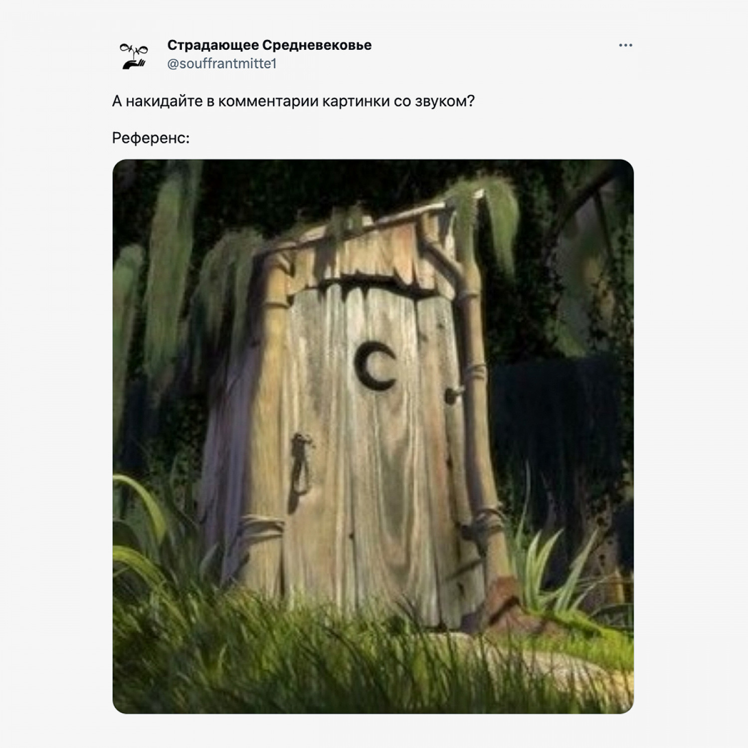 Некоторые кадры из видео настолько прочно связаны с воспоминаниями, что при взгляде на изображение в голове сразу возникает конкретная музыка, слова или звуки. Владельцы твиттера «Страдающее Средневековье» предложили пользователям вспомнить подобные «картинки со звуком», а в качестве примера привели скрин из первых минут «Шрека». Мультфильм вышел еще в 2001 году, но большинство зрителей помнит, что главный герой выходит из деревянного туалета под строчку «Somebody once told me the world is gonna roll me» из песни «All Star» группы Smash Mouth.