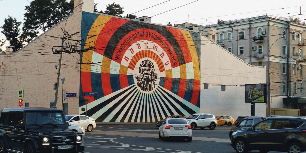 В проезде Апакова в Москве закрашивают вторую, последнюю часть мурала американского художника Шепарда Фейри под названием «Искусство должно распространяться повсюду». Об этом сообщает телеграм-канал «Наша Якиманка. Канал граждан Якиманки».
