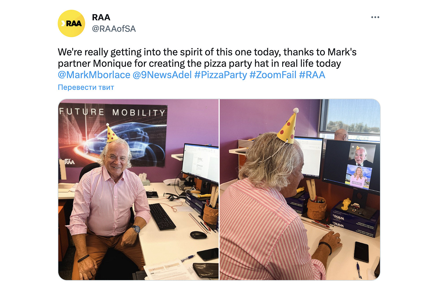 Марка Борлейса, старшего менеджера Королевской автомобильной ассоциации, пригласили на интервью в эфир австралийского телеканала 9 News Adelaide. Гость подключился по видеосвязи, но обнаружил проблемы с фоном — за его спиной оказалась виртуальная автомойка, и он попытался от нее избавиться. Однако ситуация не стала лучше: на фоне появилось морское дно с черепахами и проплывающим дайвером. Борлейс продолжил разбираться с настройками, надеясь убрать фильтр, и вдруг на его голове возник праздничный колпак, напоминающий пиццу. В этот момент журналистка Элис Монфрис уже не могла сдерживаться, и громко рассмеялась.