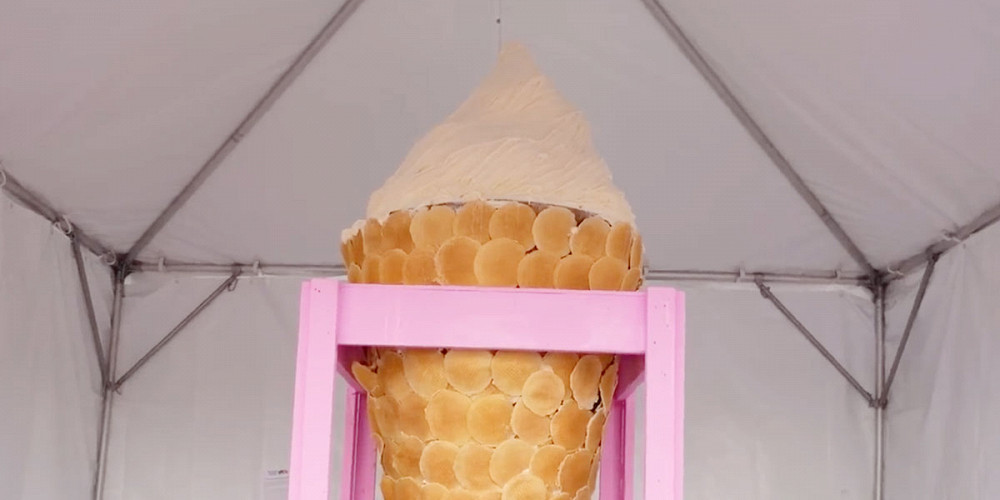 В ролике показан весь процесс работы: сначала ютубер и его команда изготовили большую металлическую раму для поддержки рожка, предусмотрев внутри отделение для сухого льда — иначе все растаяло бы слишком быстро. Сам рожок собирали из отдельных вафель, которые пекли в вафельницах и склеивали между собой с помощью шоколада — всего было использовано 136 килограмм. А чтобы его заполнить, потребовалось 454 килограмма ванильного мороженого.