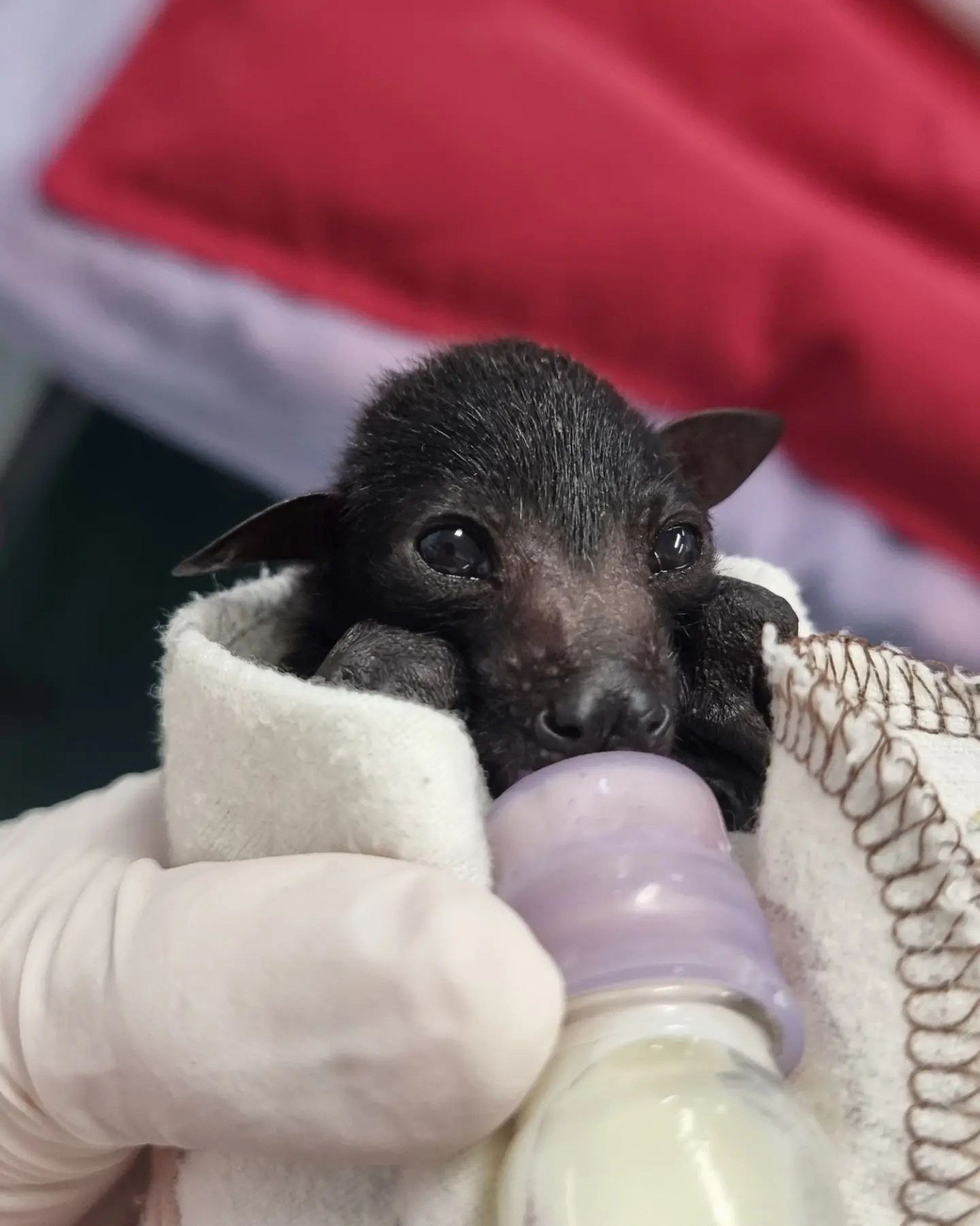 Волонтерка рассказывает, что самых маленьких выхаживают в инкубаторе и кормят их молоком не меньше пяти раз в день. С шести недель летучие мыши начинают есть фрукты. А с 13 недель подопечных переселяют в летный вольер, где они могут попрактиковаться в полетах. Когда проходят еще пять недель, в ночное время вольер открывают — летучие мыши могут «покинуть его, когда они будут готовы».