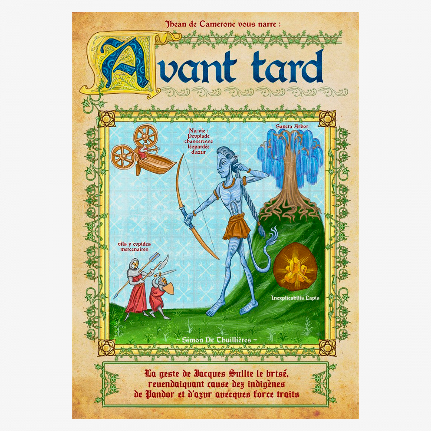 Французский иллюстратор Симон де Тюильер увлечен историей: например, он принимает участие в средневековых реконструкциях и практикует исторические европейские боевые искусства — это направление фехтования, в рамках которого энтузиасты знакомятся с техниками, изучая старинные манускрипты и трактаты. По его воспоминаниям, в начале пандемии COVID-19 многие задавались вопросом «Собирается ли общество вернуться в Cредние века?». Тогда де Тюильер попытался представить, как выглядело бы кино, «переосмысленное с использованием графических и символических кодов Средневековья».