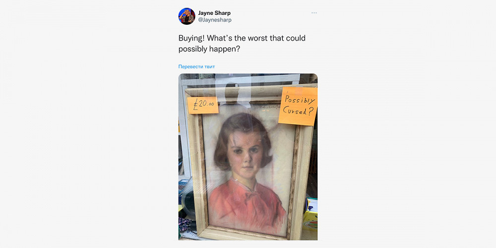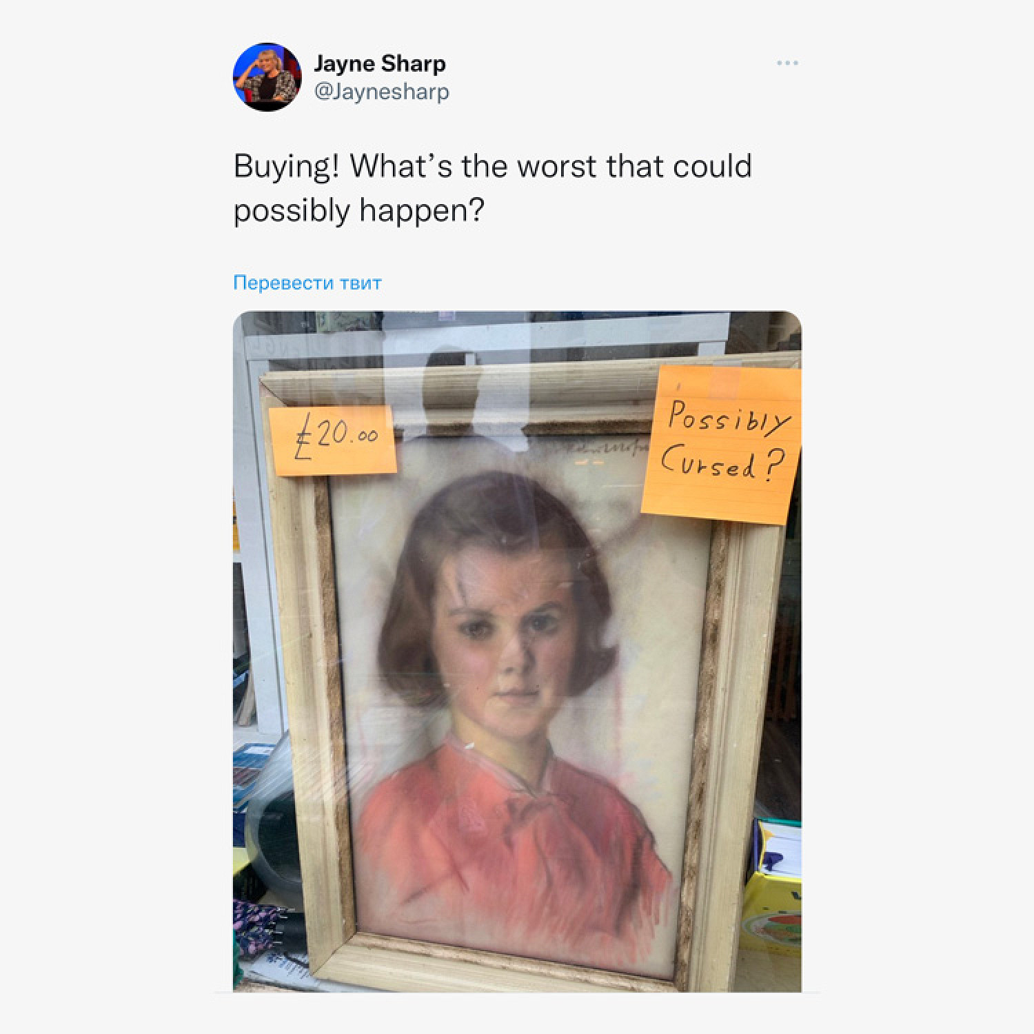 Так портрет вновь оказался на витрине — за те же 20 фунтов (около 2400 рублей), но на этот раз с приклеенной запиской «Возможно, проклята?». Элледж решил, что это будет забавно, потому что никто из сотрудников на самом деле не верил в какие‑то мистические свойства картины.