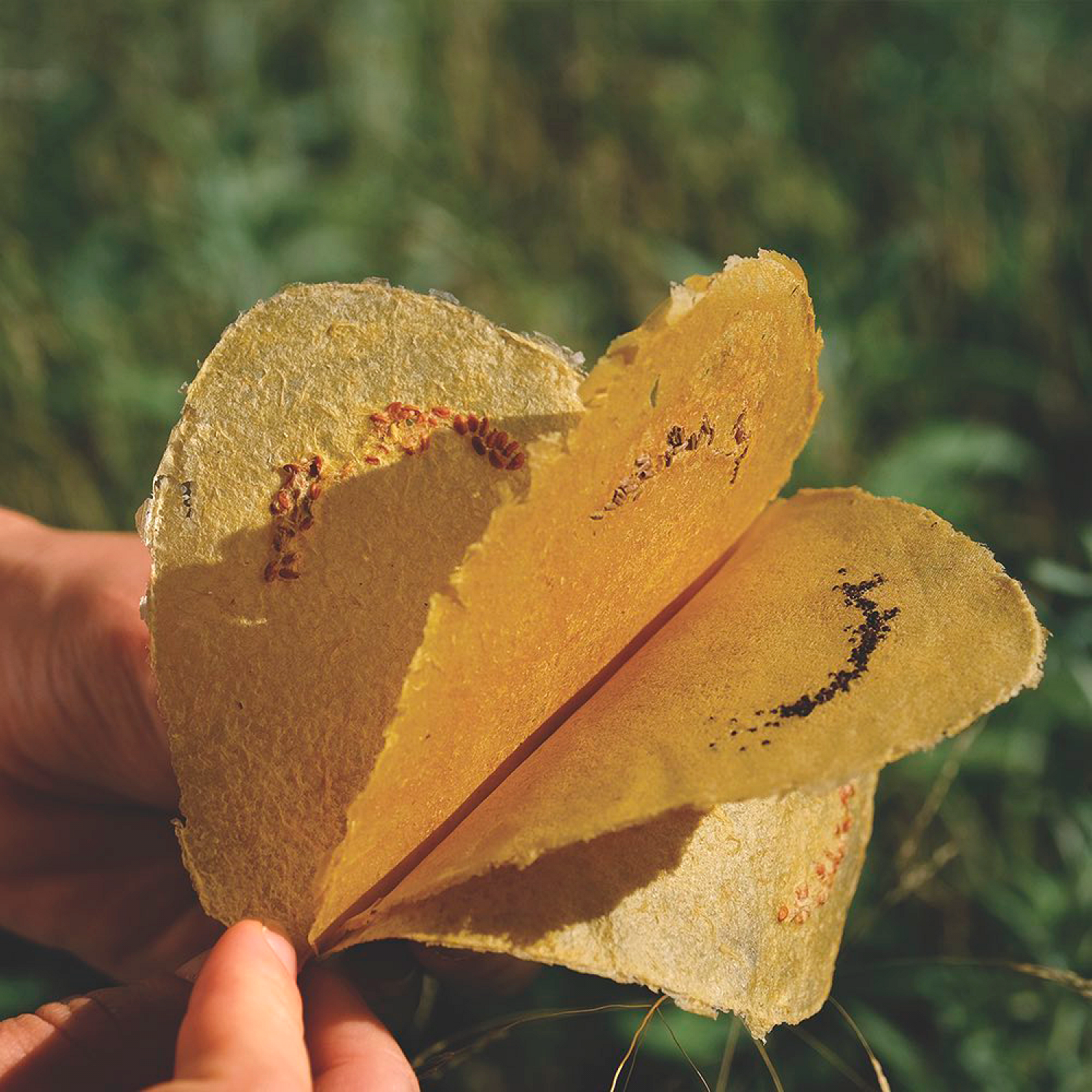 При использовании O-SOW будет производиться естественный посев: в бумагу вплетены разные семена растений, определенную пачку можно выбрать, исходя из привычной растительности в регионе, куда направляется путешественник.