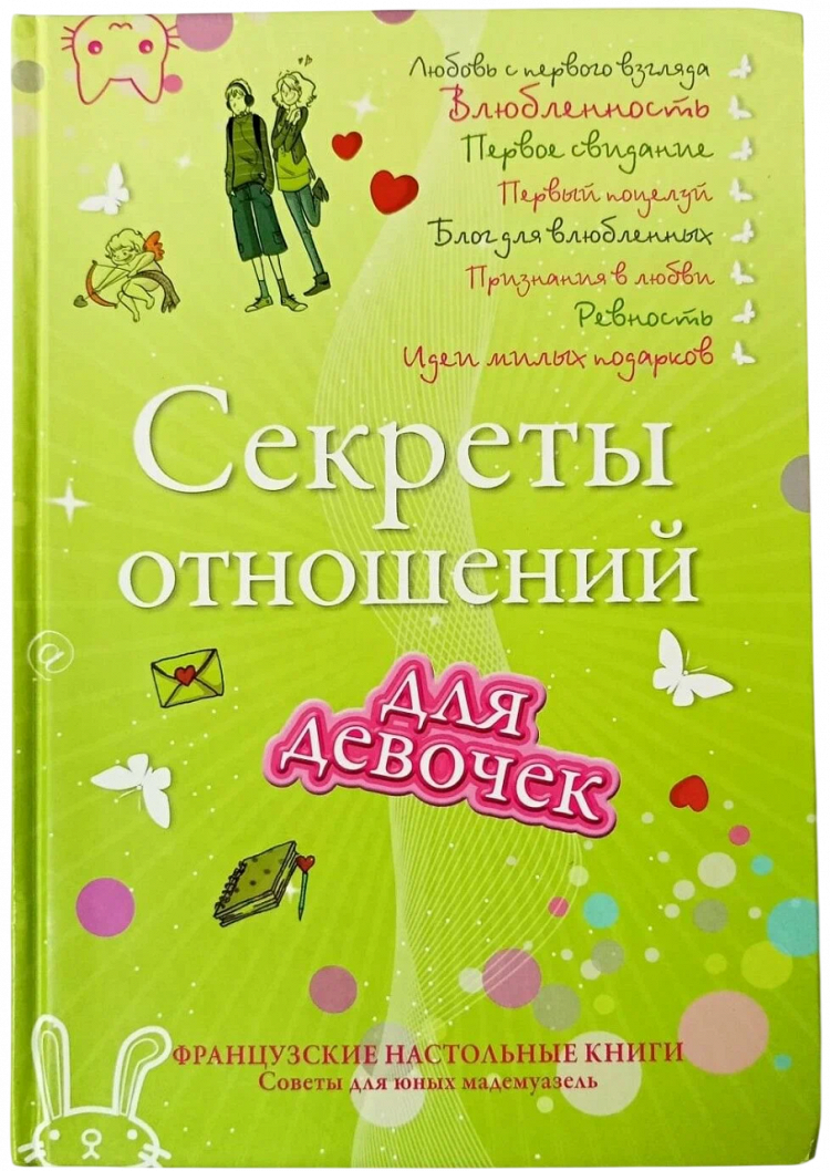 Книжки-энциклопедии в розовых переплетах, с косметикой, мягкими игрушками и школьными тетрадями на обложке призваны помочь девочкам-подросткам 10–14 лет «справиться» с переходным периодом, который неизменно описывается как сложный. Подросткам предлагают готовиться к роли женщины, тогда как тело проходит через процесс пубертата. Таких книг на рынке великое множество: их пишут авторы разной степени профессиональности (но сейчас все чаще с пометкой «однобрено психологом»), а существующие издания постоянно перевыпускаются. Например, книга «Только девочки. 100%» издательства «Махаон» переиздается на русском уже семь лет. Оригинальный французский текст появился еще раньше, в 2003 году.