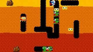 Вооруженный отбойным молотком и одетый в костюм вызывающе белого цвета мужчина роет землю и охотится на помидоры. Вонзив в них наконечник шланга насоса, накачивает до тех пор, пока они не лопнут. Несмотря на кажущуюся простоту, Dig Dug заложила основу так называемого сэндбокс-геймплея («песочницы»), даром что вся в этой песочнице и происходила. Туннели, которые рыл герой, меняли геометрию уровня, а вместе с ней — и поведение врагов, и весь игровой процесс. Через 25 лет к похожему геймплею добавят летучих мышей, преследующих игрока по прорытым ходам, и девушек в красном, ждущих, что их спасут, — получится Spelunky, одна из главных инди-игр на планете.