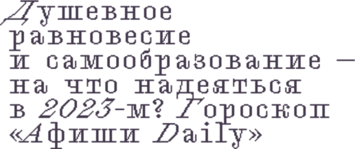 Каждый раз в канун Нового года мы надеемся изменить свою жизнь к лучшему: заняться спортом, сходить к стоматологу и больше общаться с близкими. Это пора веры в светлое будущее. «Афиша Daily» попросила предсказателей из «Годноскопа» рассказать, на что стоит обратить внимание знакам зодиака, загадывая желания на 2023-й.
