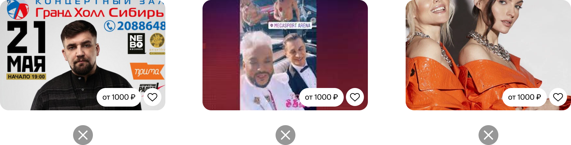 Не допускается использование форматов афиш с телефонами, текстом, водяными знаками